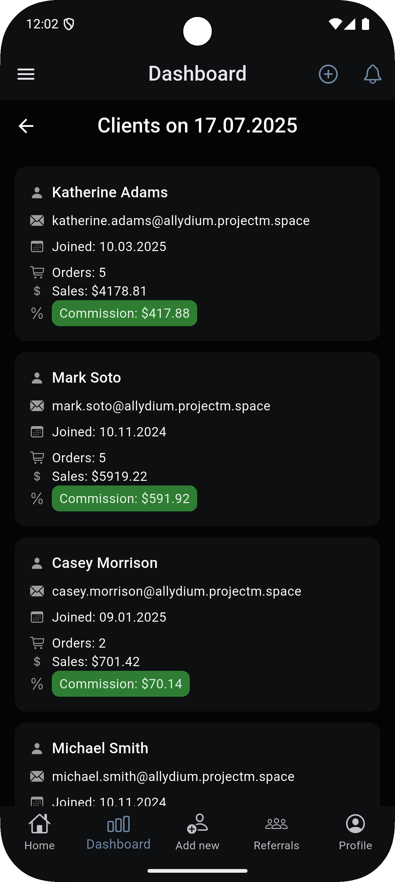 Manage your agents, referrals, and CRM in real time. Allydium Hub is the official mobile companion for your e-commerce team.